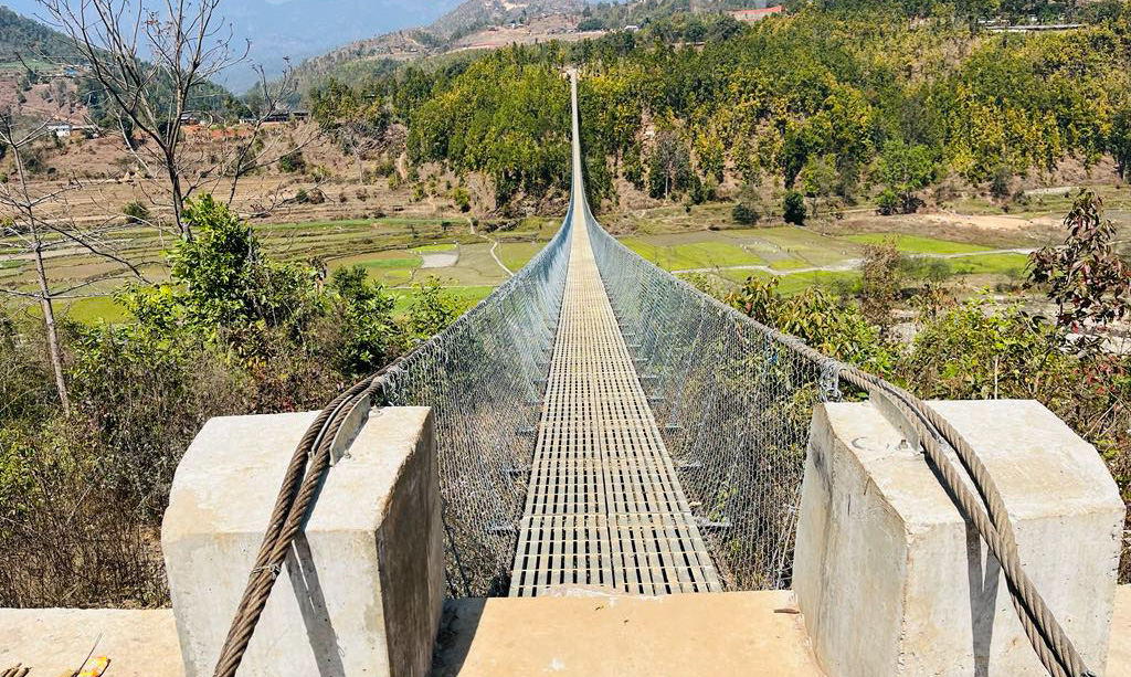 उदयपुर (गाईघाट), ६ चैतः उदयपुरको चौदण्डीगढी नगरपालिका–५ सिवाई सुन्दरपुर बेलहीस्थित त्रियुगा नदीमा झोलुङ्गे पुल निर्माण गरिएको छ । निर्माणाधीन पक्की पुल बाढीले भत्काएपछि सोही स्थानमा झोलुङ्गे पुल निर्माण गरिएको हो । चौदण्डीगढी नगरपालिकाका प्रमुख कालुमान लामाका अनुसार २८० मिटर लम्बाइ र पाँच मिटर चौडाइ भएको सो पुल निर्माण गर्न करिब रु ६० लाख खर्च भएको छ । सो स्थानमा पक्की पुल निर्माण नहुँदा चौदण्डीगढी नगरपालिकाका त्रियुगा नदी पारीका वडा नं १०, ५ र ९ का बासिन्दालाई कठिनाइ भएको थियो । वर्खामा डुङ्गाको प्रयोग गरेर नदी तर्नुपर्ने बाध्यता थियो । झोलङ्गे पुल निर्माण भएपछि उक्त क्षेत्रका झण्डै पाँच हजार बासिन्दालाई बेल्टार बजार आवतजावत गर्न सहज भएको नगरपालिकाकी उपप्रमुख मणिकादेवी दुलालले बताउनुभयो । त्रियुगा नदीस्थित बेलहीमा २०६७ सालमा नै पक्की पुल निर्माण थालिएको थियो । यसका लागि रु ११ करोड २७ लाख विनियोजन गरिएको थियो । विसं २०७८ मा त्रियुगाको बाढीले पक्की पुलको तीन पिलर र स्ल्याब भत्काएको थियो । “पक्की पुल पुनःनिर्माणका लागि अनुरोध गरे पनि सुनुवाइ भएन, स्थानीयको सहजताका लागि झोलुङ्गे पुल निर्माण गरेका हौँ”, उपप्रमुख दुलालले भन्नुभयो ।