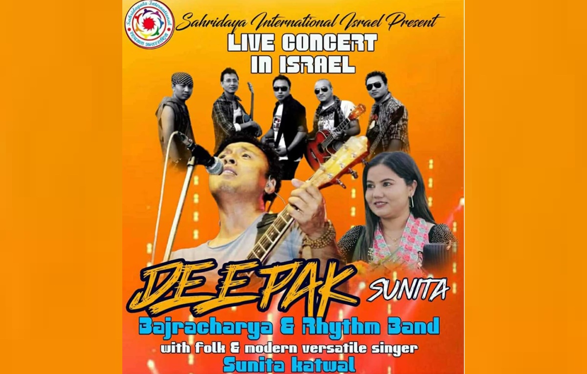काठमाडौं। सहृदयता इन्टरनेसनल इजरायलले इजरायलमा सांगीतिक कन्सर्ट गर्ने भएको छ। आगामी नोभेम्बर १४ ९कात्तिक २८० मा हुने कन्सर्टमा दीपक बज्राचार्य एण्ड रिदम ब्यान्ड र लोक तथा आधुनिक गायिका सुनिता कटुवालको प्रस्तुति रहनेछ।