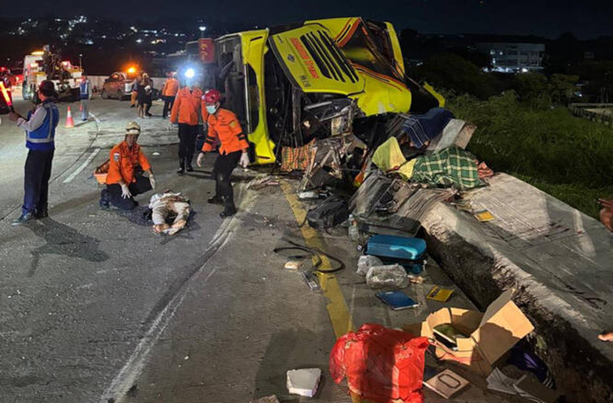 इन्डोनेसिया । सोमबार बिहान इन्डोनेसियाको एक प्रमुख राजमार्गमा भएको भीषण दुर्घटनामा कम्तीमा १६ जनाको ज्यान गएको उद्धारकर्ताहरूले बताएका छन् । राजधानी जकार्ताबाट योग्यकार्तातर्फ गइरहेको एक कोच बस राजमार्गको इन्टरचेन्ज नजिकै अवरोधमा ठोक्किएर पल्टिँदा यो दुर्घटना भएको हो ।