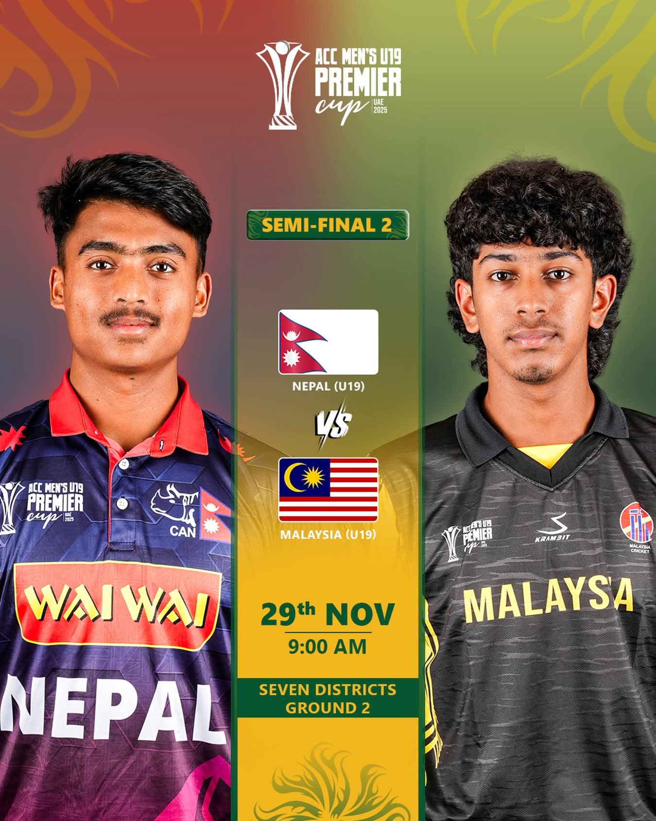 नेपालले मलेसियालाई ९ विकेटले हराएर उपाधिनजिक पुगेको हाे। युएईले भने ओमानलाई ८ विकेटले पराजित गर्दै फाइनलमा सुरक्षित भएको हाे।