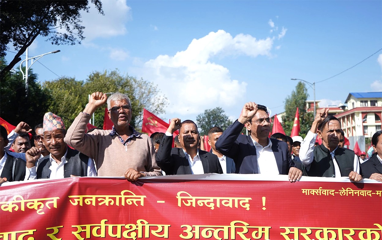 काठमाडौं :सर्वपक्षीय अन्तरिम सरकारको माग गर्दै नेत्रविक्रम चन्द नेतृत्वको नेकपाले काठमाडौंमा प्रदर्शन गरेको छ । नेकपाले भृकुटीमण्डप क्षेत्रमा र्यालीसहित प्रदर्शन गरेको हो ।