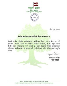 बैठकमा केन्द्रीय कार्यसम्पादन समितिका पदाधिकारी र सदस्यहरूलाई उपस्थितिका लागि आग्रह गरिएको छ ।