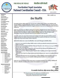 यता, गैरआवासीय नेपाली संघ राष्ट्रिय समन्वय परिषद् अमेरिका — एनसीसी अमेरिकाका प्रवक्ता द्रोण गौतमले अर्को विज्ञप्ति जारी गर्दै मन्त्री बब्लु गुप्ताको अमेरिका भ्रमणको बचाउ गरेका छन् ।